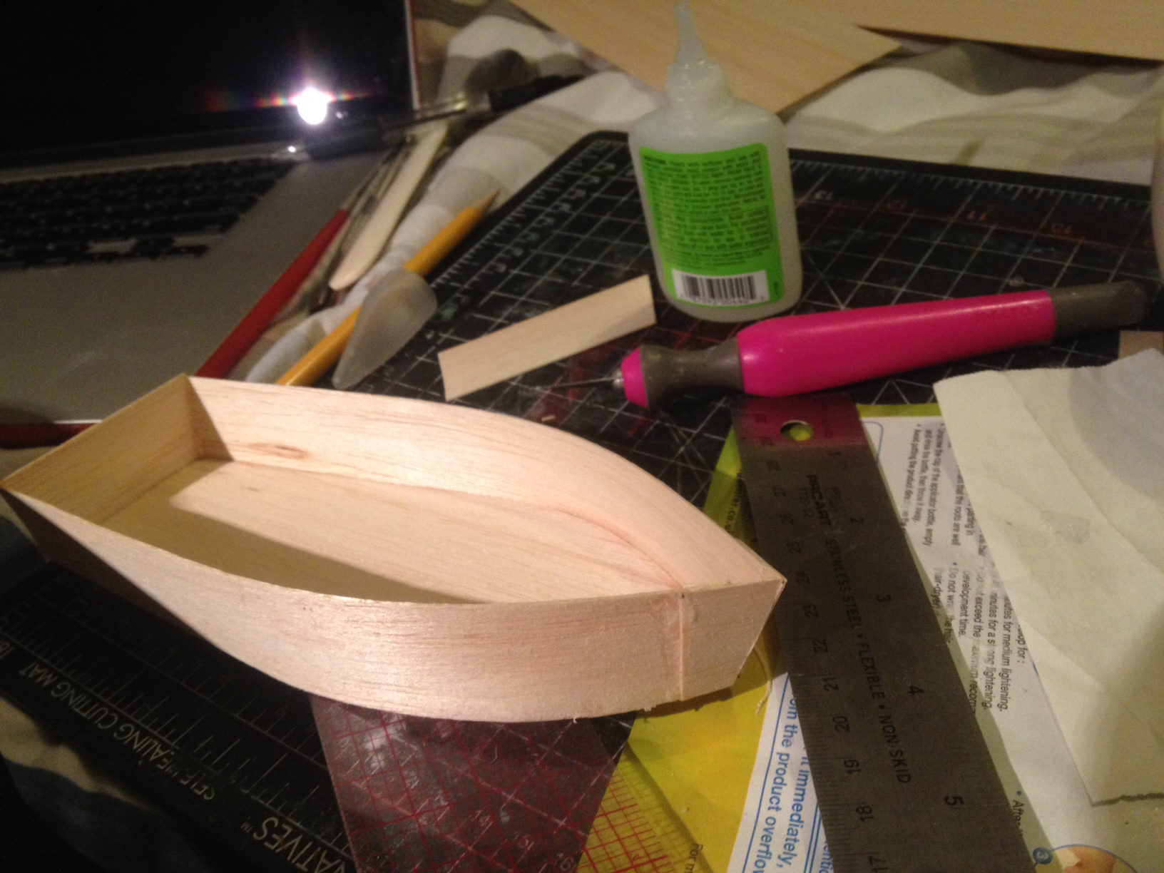 How was the boat made? Very thin balsa wood, glue, and patience!